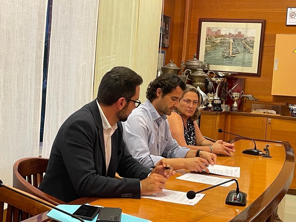 El candidato del Partido Popular a la Alcaldía de Torrevieja, Eduardo Dolón, reunido en la tarde de ayer jueves, 4 de mayo, en el Real Club Náutico de Torrevieja (RCNT) con los empresarios de la feria de atracciones de Torrevieja, para rubricar un nuevo contrato electoral en el que se compromete, entre otras cuestiones, a adecuar un vial para entrada y salida (montaje y desmontaje) de las atracciones para vehículos pesados, así como la implementación de videovigilancia en la zona y de wifi para los usuarios, una mayor presencia policial sobre todo en época estival y una adecuada limpieza del recinto por los servicios municipales a través de su contrato de recogida de residuos sólidos.